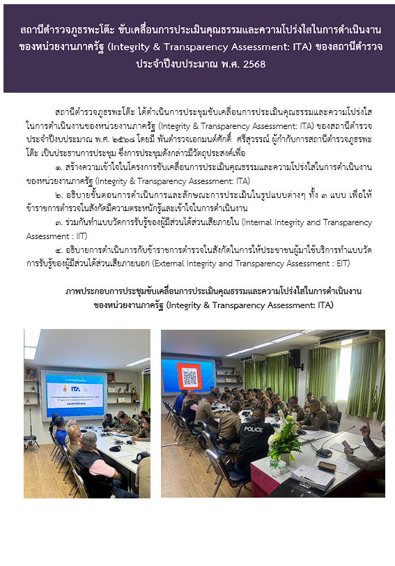 การประเมินคุณธรรมและความโปร่งใส ITA 21 เม.ย.,2024 adminphatoใส่ความเห็น ประชาสัมพันธ์การทำแบบวัดการรับรู้ผู้มีส่วนได้ส่วนเสียภายนอก (OIT) ณ จุดประชาสัมพันธ์
